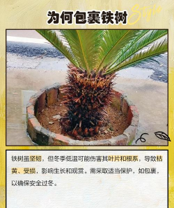 | 方法 | 材料 | 操作步骤 ||------|------|----------|| 草绳或稻草包裹 | 干燥的草绳或稻草 | 从根部开始,逐渐向上缠绕至树干顶部,确保包裹紧密。 || 塑料薄膜覆盖 | 透明或半透明的塑料薄膜 | 在草绳或稻草的基础上,从底部向上包裹整个树干,注意不要直接接触树叶。 || 防寒布覆盖 | 透气性好的防寒布 | 从树冠顶部向下覆盖,直至根部,用绳子或夹子固定。 || 搭建防风屏障 | 木板、竹竿、防风网等 | 在铁树周围搭建一个简易的防风屏障,高度应超过树冠。 || 地面覆盖 | 枯叶、木屑、稻草等有机物质 | 在根部周围铺设一层厚厚的有机物质,厚度约为10-15厘米。 || 浇水管理 | - | 减少浇水次数,保持土壤微湿,严寒天气前适当浇一次透水。 || 室内养护 | - | 将盆栽移至室内温暖处,保持温度在10-15℃之间,保证充足光照。 |