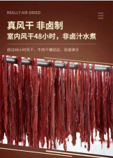 简介:牛肉干是一种通过去除水分并加入各种调料制成的传统食品,在内蒙古地区非常受欢迎。制作工艺:选材:选择新鲜优质的牛肉。切片:将肉切成薄片或条状。腌制:用盐、酱油、五香粉等调料腌制数小时至一天。烘干:可以采用自然风干、烤箱烘干或专业设备烘干等方式。营养价值:高蛋白、低脂肪,富含铁质和B族维生素。食用方式:可以直接作为零食食用,也可以用来烹饪其他菜肴。草原村落生活