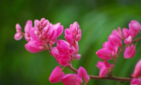 珊瑚藤花形娇柔,花期极长,色彩艳丽,繁花满枝,美丽异常,珊瑚藤花繁且具微香,是夏季难得的名花。