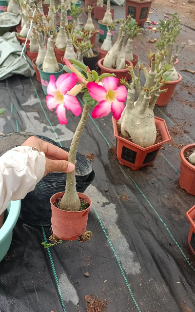 特点:重瓣沙漠玫瑰是通过人工选育获得的品种,花型更为复杂,颜色更加丰富,观赏价值更高。开花时间:重瓣种子苗的开花时间相对较晚,通常需要3-4年才能开花。这是因为重瓣品种的生长速度较慢,需要更多的时间积累养分,形成强壮的植株。同样,在适宜的环境下,重瓣沙漠玫瑰每年也可多次开花,主要集中在春末至秋初。四、影响沙漠玫瑰开花的因素
