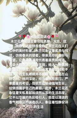 木兰花的花语是高尚的灵魂,象征着纯洁、坚贞与崇高的品质。这一寓意源于其花朵盛开时洁白无瑕、傲立枝头的姿态,常让人联想到高洁的品格与无私的精神。以下是关于木兰花文化内涵与象征意义的详细解读: