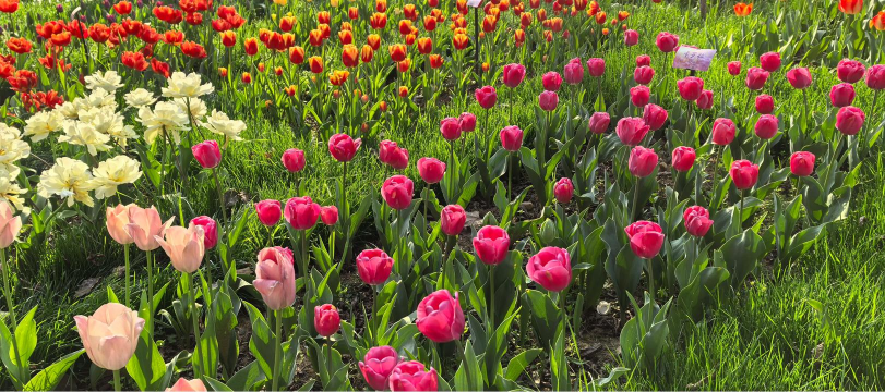 中山公园:4月初的郁金香文化节展示95个品种、18万株郁金香,搭配牡丹、海棠等,活动丰富。