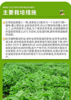 春播(4-5月)为主,也可秋播(初霜前40天完成),种子在2℃-3℃即可发芽,最适温度18℃-25℃。