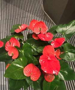 通过人工调控温度、湿度和光照,红掌可实现周年开花:
