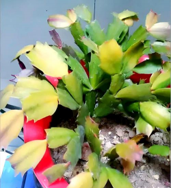 原因:蟹爪兰不耐寒,冬季温度低于10℃或温差过大时,叶片易因冻伤发红,尤其在顶端茎叶表现明显。