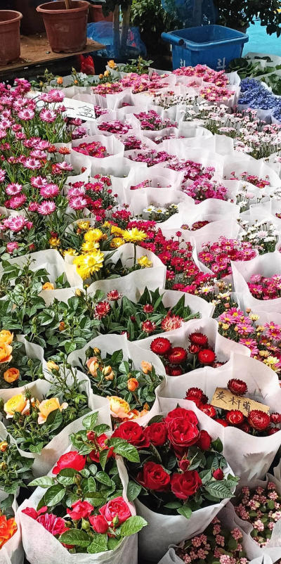 永生花与干花:市场内有专营区,如勿忘我(5~8元/把)天然干花特性,无需养护,适合长期保存。