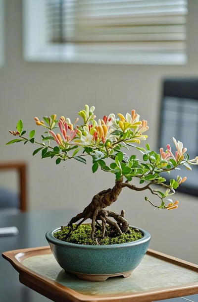 防风措施:枝条柔软易被强风刮折,建议安定在支撑物上。通过以上系统的种植与养护方法,金银花盆景能够保持良好的生长状态和观赏价值,成为室内外装饰的精品。金银花盆景一年四季均可栽植,但以早春最为适宜。只要掌握好光照、水分、施肥、修剪等关键环节,就能培养出姿态优美、花开繁茂的金银花盆景。