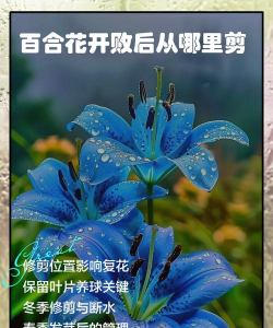 百合花开败后从花茎处修剪,将残花和花茎全部剪掉,可以避免植株消耗太多养分,影响之后植株的成长。不定期将百合植株生病的枝条、枯瘦的枝条都剪掉,促进植株茁壮成长。百合花耐半阴,花期要采取适当的遮荫措施,或放在阴凉的地方养护。