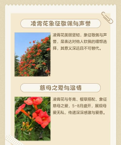 总结 :凌霄花的花语以“敬佩”“慈母之爱”为核心,同时蕴含“志存高远”“坚韧不屈”的精神内涵。不同场景下可侧重不同花语表达。