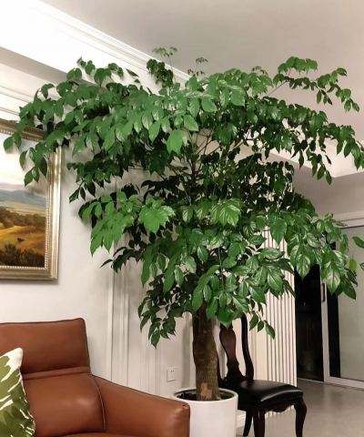 净化空气:幸福树能吸收甲醛等有害气体,改善客厅空气质量,同时营造优雅氛围。