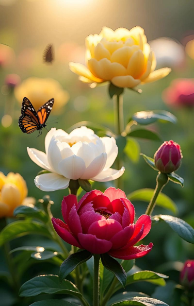 牡丹象征富贵吉祥、繁荣昌盛,被誉为“花中之王”,唐代起被视为盛世之花,寓意圆满幸福。