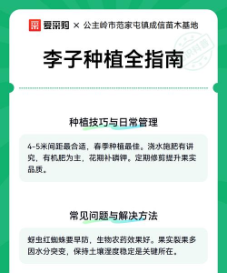 种植李子需要综合考虑园地选择、品种搭配、栽培管理、病虫害防治等多个环节。以下是基于最新栽培技术的详细步骤和要点:
