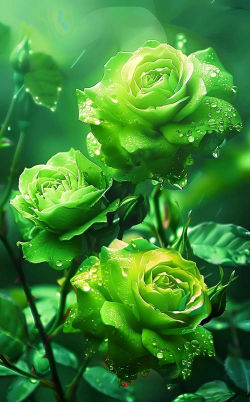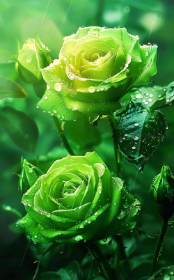 绿玫瑰自然品种如“绿萼”或转基因培育的绿玫瑰,花瓣呈豆绿色,边缘可能带白或淡黄。传统品种“绿星”由中国培育,花色特异且耐开。