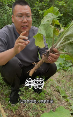 牛蒡又名恶实、大力子,属桔梗目,是菊科二年生草本植物,基生叶宽卵形,长达30厘米,宽达21厘米,头状花序多数或少数在成伞房花序或圆锥状伞房花序,瘦果倒长卵形或偏斜倒长卵形,两侧压扁,浅褐色。花果期6-9月。