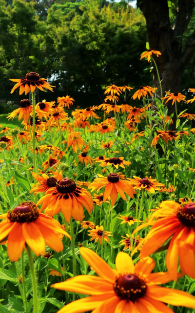 凌霄花 :攀爬性花卉,橙色花朵迎阳开放,适合靠墙种植。