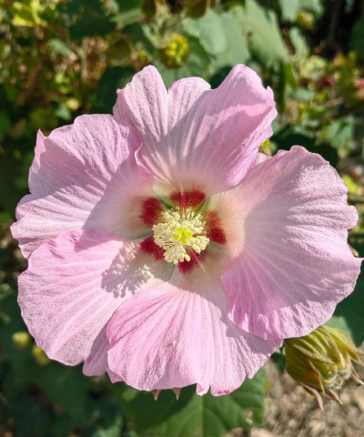 木芙蓉:花色随温度变化,初开白色或淡红,后转为深红,南方常见。