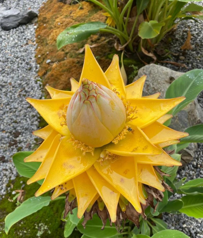 地涌金莲因其金色花序形似莲花,被佛教视为光明、清净与超脱的象征。传说释迦牟尼佛诞生时,每走一步脚下都会涌现金色莲花,即地涌金莲;佛经中“天花乱坠,地涌金莲”的描述也强化了它与佛法的关联。