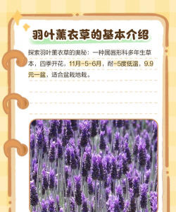 羽叶薰衣草是唇形科、薰衣草属灌木,株高30-100厘米。叶形为二回羽状深裂叶,对生,叶色灰绿。植株开展,深紫色管状小花有深色纹路,具2唇瓣,上唇比下唇发达。香叶香,花无香味。一年四季开花,但主要花期集中在11月到第二年5-6月,夏季过热时停花休眠。