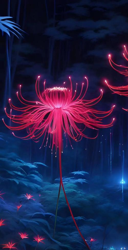 学名石蒜,以花叶永不相见、血红色花瓣著称,民间传说其生长于冥界黄泉路,象征生死轮回与阴阳两隔。在佛教中代表轮回,在日本象征悲伤回忆,在韩国寓意思念。