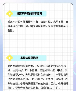 睡莲不开花可能由多种因素共同导致,以下是常见原因及对应的解决方法: