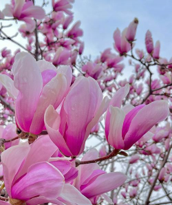 花朵硕大,白色或淡紫色,先花后叶,香气浓郁,常见品种有白玉兰和紫玉兰,耐寒性强,是园林经典树种。