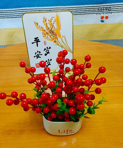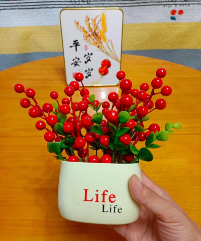 冬青红色果实象征“生命与热闹”,搭配绿叶或白花尤为醒目,适合瓶插或装饰餐桌,寓意红火迎新。