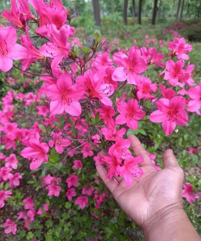 雄蕊7-10枚,花丝有微毛,花药紫色。综上,杜鹃花的形状因品种差异显著,从单瓣到重瓣,从漏斗形到离瓣形,形态变化丰富,观赏性极强。