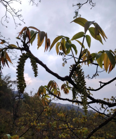 气味:雄花开放时可能散发轻微异味,但雌花无明显气味。综上,核桃树的花以雌雄异熟、形态迥异为特点,雄花为下垂的柔荑花序,雌花则为顶生的簇状结构,两者共同保障了风媒授粉的适应性。