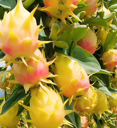 火龙果树为攀援性肉质灌木,依靠气根附着于墙壁、岩石或其他支撑物上生长,整体形态类似仙人掌,但枝条更细长且分枝繁茂。老枝常呈淡褐色,质地坚硬。