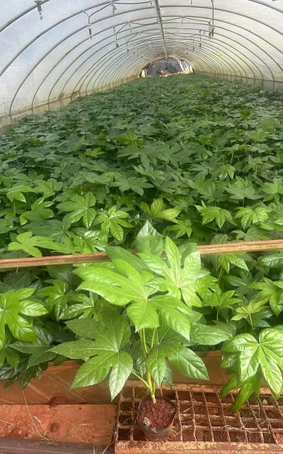 八角金盘是一种常绿灌木或小乔木,植株高可达5m,花期为10~11月,果熟期在翌年4月。因其有8片裂叶,看似有8个角,所以被称为八角金盘。该植株适宜配植于庭院、门旁、窗边、墙隅及建筑物背阴处,也可点缀在溪流滴水之旁,还可成片群植于草坪边缘及林地。八角金盘对二氧化硫抗性较强,适于厂矿区、街坊种植。