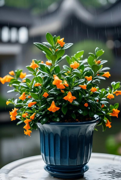 茉莉花长日照植物,花色洁白芳香,夏季需充足水肥,喷水可刺激开花。
