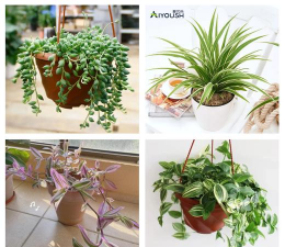 青叶吊兰:叶片纯绿色,细长柔韧,花朵白色,是最基础的品种。