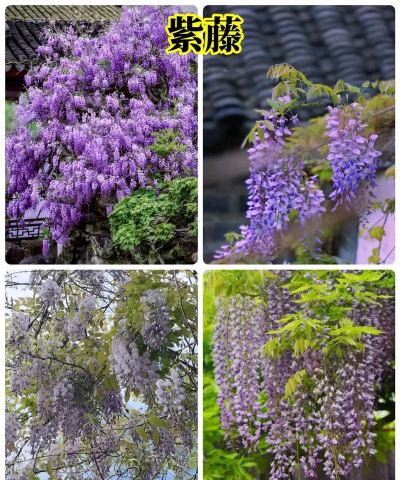 紫藤落叶攀援藤本,春季开紫色或深紫色蝶形花,适应性强,生长快且寿命长,常形成壮观的花瀑。
