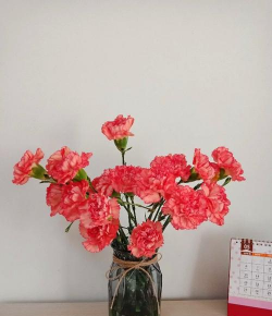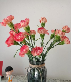 花头处理:康乃馨花头不可喷水,否则易腐烂。若需促开,可轻揉萼片或拨开外层花瓣。