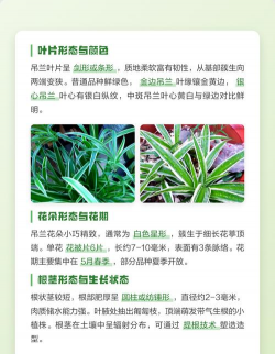 花期 :多数品种花期集中在春季或夏季,少数品种(如斑叶吊兰)可返祖长绿叶。