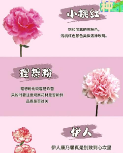 象征:温柔、女性气质(如粉康乃馨、粉玫瑰),母亲节常见。