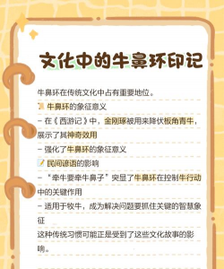 马、驴主要通过笼头和缰绳控制,因其颈部灵活且对鞭子敏感,无需鼻环。而牛的役用需求(如耕地需精准牵引)和生理特点决定了栓鼻的独特性。综上,栓牛鼻子是结合牛的生理弱点(鼻中隔敏感)和驯化需求的智慧实践,既保障了人类对牛的有效利用,也反映了农耕文明的技术积累。