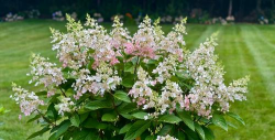 银边绣球:叶片带银边,耐阴性强,平顶小花可调蓝。