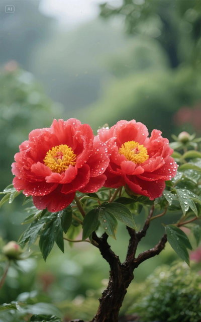 作为“花中之王”,牡丹以繁复华丽的花型寓意富贵与显赫。唐代以来,它被宫廷广泛栽培,成为盛世与皇权的标志,红色牡丹尤其象征繁荣与尊荣。