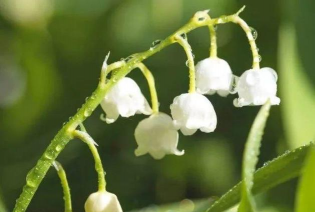 特征:白色小花成串下垂,形似铃铛,寓意吉祥。法国设有“铃兰节”,象征幸福。