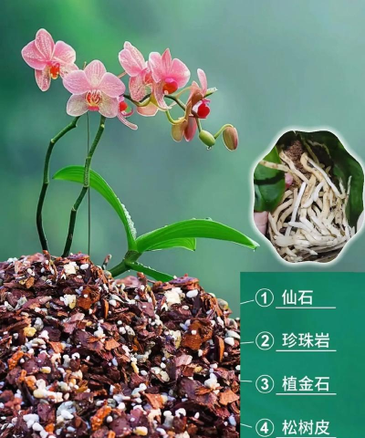 经典配方:植金石65% + 仙土35%,需提前泡透使用,适合室内养兰,便于水分管理。
