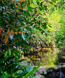 金桂:花色金黄,香气浓郁,花期9月下旬,代表品种如“波叶金桂”。