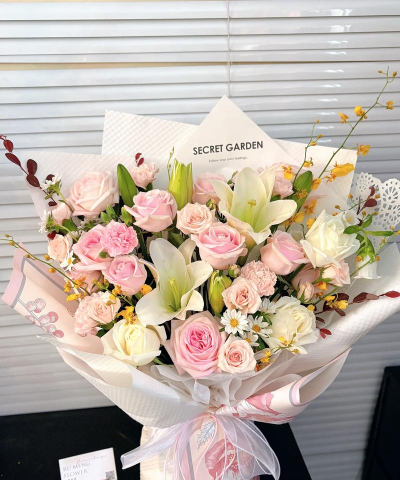 百合花素有“云裳仙子”之称。由于其外表高雅纯洁,天主教以白百合花为圣母玛利亚的象征,而梵蒂冈以百合花为国花。百合的种头由鳞片抱合而成,取“百年好合”之意,中国自古视为婚礼必不可少的吉祥花卉。还有尊重的含义。