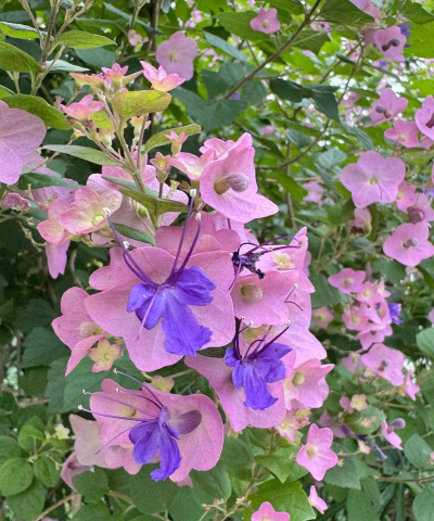 紫藤:木质藤本,春季开紫色花序,适合廊架装饰。