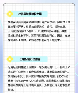 杜鹃花对土壤要求较高,适宜在疏松、透气、排水良好且呈酸性的土壤中生长,pH值应控制在4.5-6.5之间。以下是具体用土建议及配制方法: