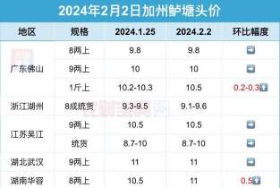 江浙地区:浙江湖州8成统货 13.5元/斤,江苏吴江9两上 13元/斤,均较节前略有下跌。