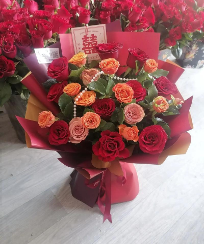 寓意:红玫瑰代表“深爱”,粉玫瑰象征“爱的宣言”,是爱情最经典的表达。在婚礼中,红玫瑰因花色鲜艳、花形饱满,常作为主花材使用。