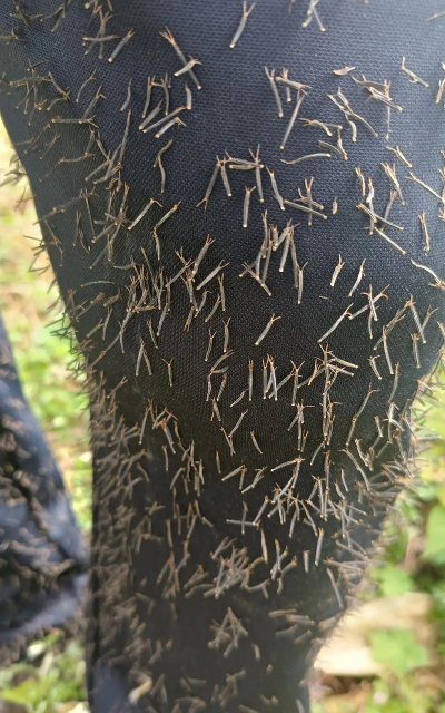 鬼针草长得十分纤细,像针一样,颜色呈黑紫色,故有“鬼针草”之称。鬼针草的种子上长有密集的尖刺,在动物或人经过时会沾附在其身上。
