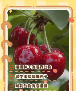 樱桃一般靠动物来传播种子。动物将樱桃吃下后,由于种子难以被消化掉,所以会随着动物的粪便被排泄出来,从而被传播到各地。樱桃在中国久经栽培,品种颇多,供食用,也可酿樱桃酒。枝、叶、根、花也可供药用。除了鲜食外,还可以加工制作成樱桃酱、樱桃汁、樱桃罐头和果脯、露酒等,具有艳红色泽,杏仁般的香气,食之使人迷醉。樱桃也是菜肴较好的配料。