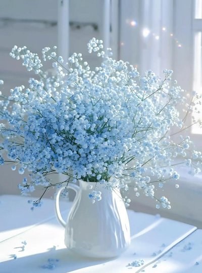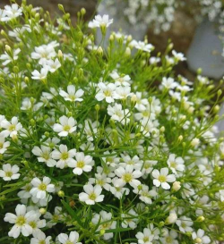 满天星是石竹科、石头花属的多年生草本植物,花期是6~8月,花朵小而密集,呈白色、淡红色,略带香味,常作为插花材料。满天星适宜生长温度是25~30摄氏度,温度过高容易造成植株畸形,温度过低植株会进入休眠期。满天星喜光照,每天需接受16个小时的光照。